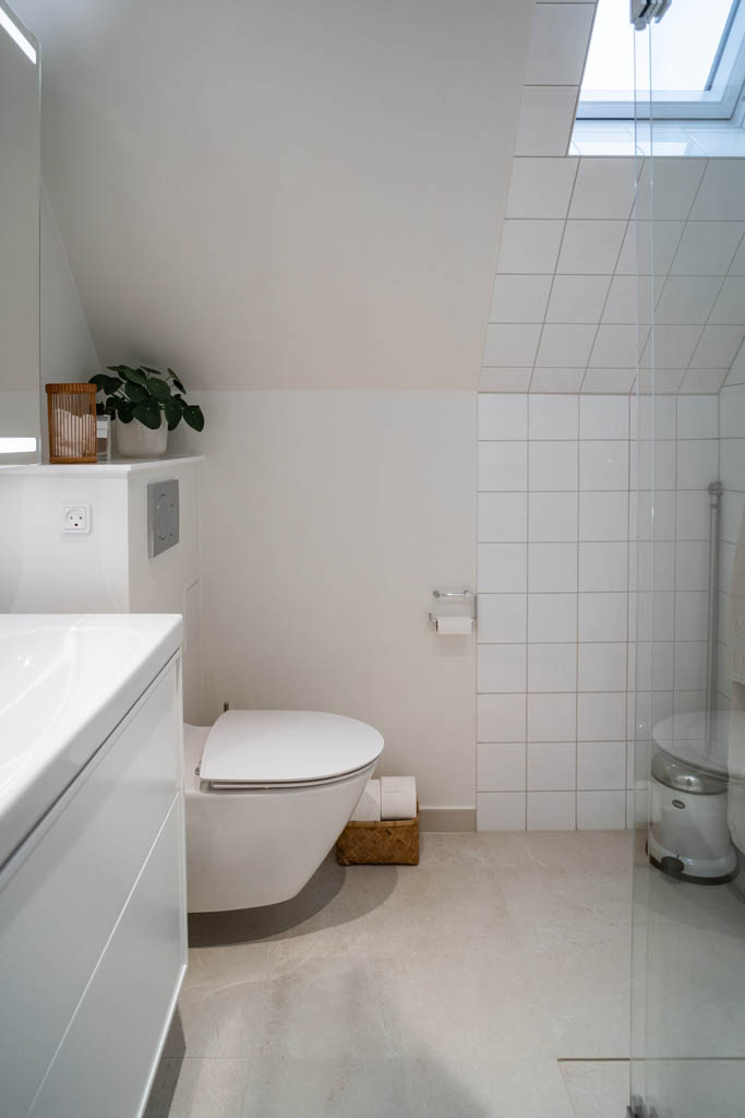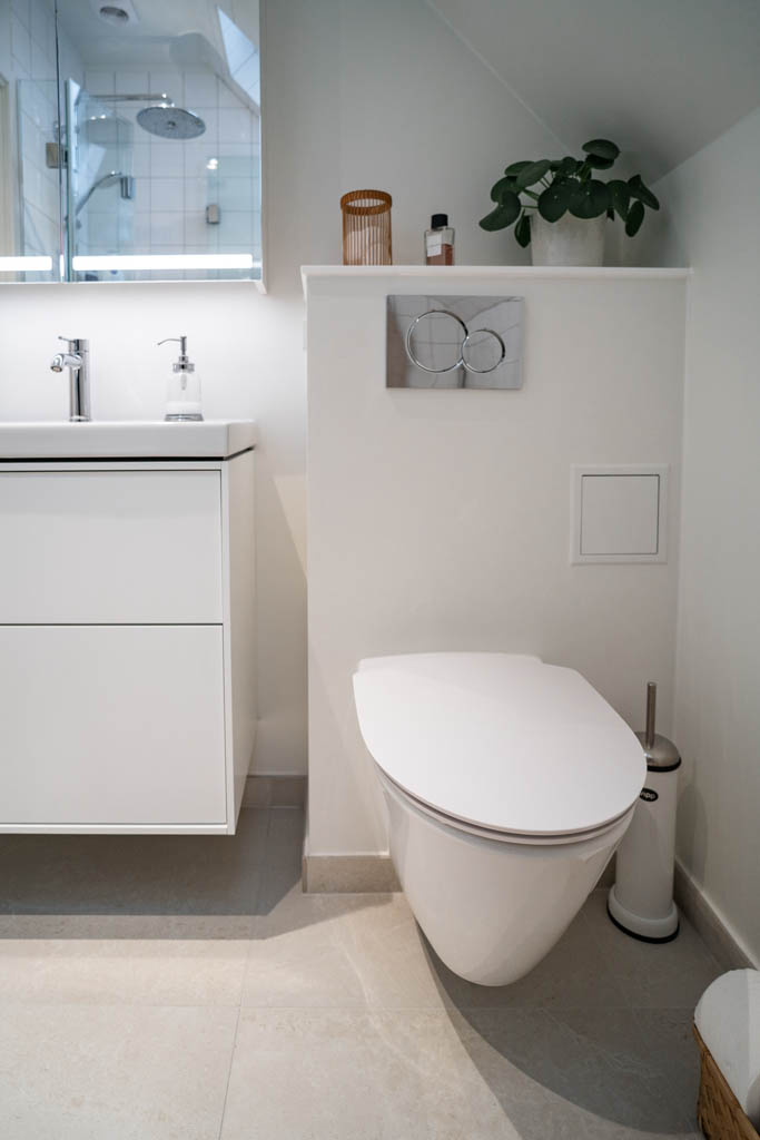Projektet omfattede også udskiftning af vinduet med et moderne Velux-vindue, der sikrer bedre isolering og lang holdbarhed. Med installation af vandbåren gulvvarme og opgradering af alle vandinstallationer blev komfort og funktionalitet optimeret.