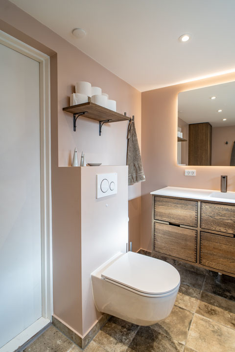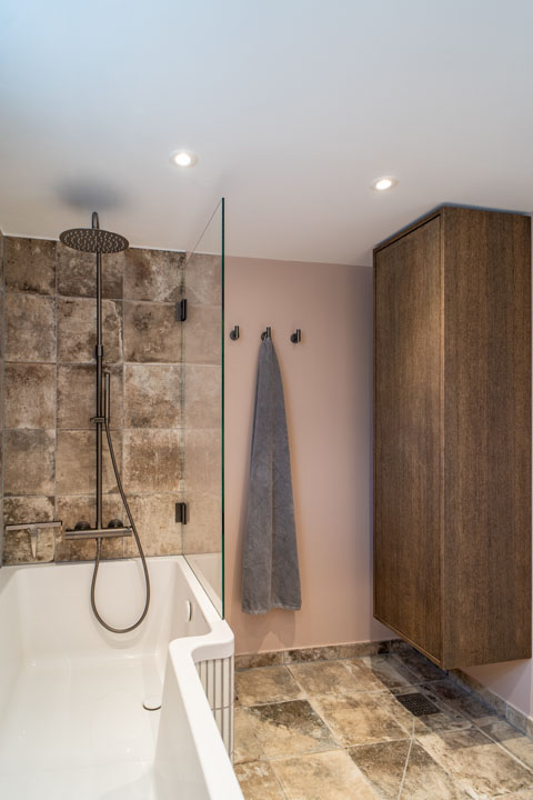 Derudover blev badeværelset moderniseret med nye overflader og installationer, og vi etablerede en effektiv kældervenlig ventilation. Kunden var selv aktiv i designvalgene, og resultatet er blevet et funktionelt og indbydende badeværelse, hvor det gamle er opdateret med ro og omtanke.