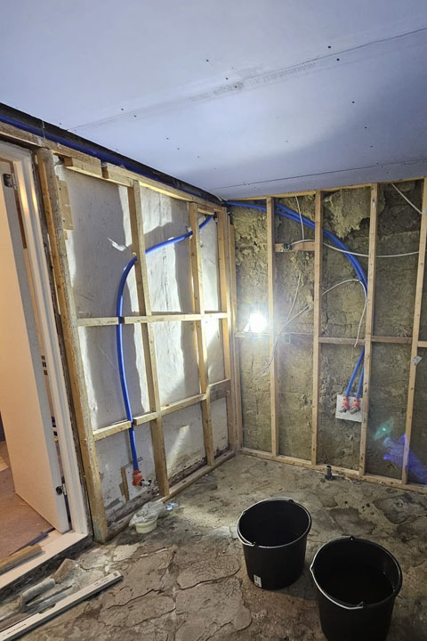 I Brønshøj hjalp vi en kunde med at renovere deres store kælderbadeværelse. Opgaven bestod i at forny hele rummet uden at bryde det eksisterende gulv op, blandt andet for at undgå unødige omkostninger. Med et termografisk kamera lokaliserede vi den eksisterende gulvvarme og arbejdede os præcist uden om den.